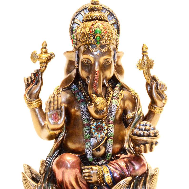 Although he is known by many attributes, Ganesha’s elephant head makes him easy to identify. Ganesha is widely revered as the remover of obstacles, the patron of arts and sciences and the deva of intellect and wisdom. As the god of beginnings, he is honored at the start of rites and ceremonies. Ganesha is also invoked as patron of letters and learning during writing sessions. Several texts relate mythological anecdotes associated with his birth and exploits.