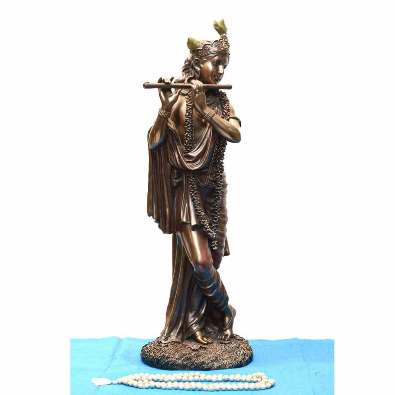 Krishna, one of the most widely revered and popular of all Indian Gods, is considered as the eighth incarnation (avatar) of the Hindu god Vishnu and also as a supreme god in his own right. He is considered to be the most charming and enigmatic of all Hindu Gods. His words of wisdom to his staunch devotee Arjuna, during the war of Mahabharata, is the very edifice of the Hindu religion in the form of the timeless Bhagavad Gita. This beautifully hand carved statue of Lord Krishna in wood measures