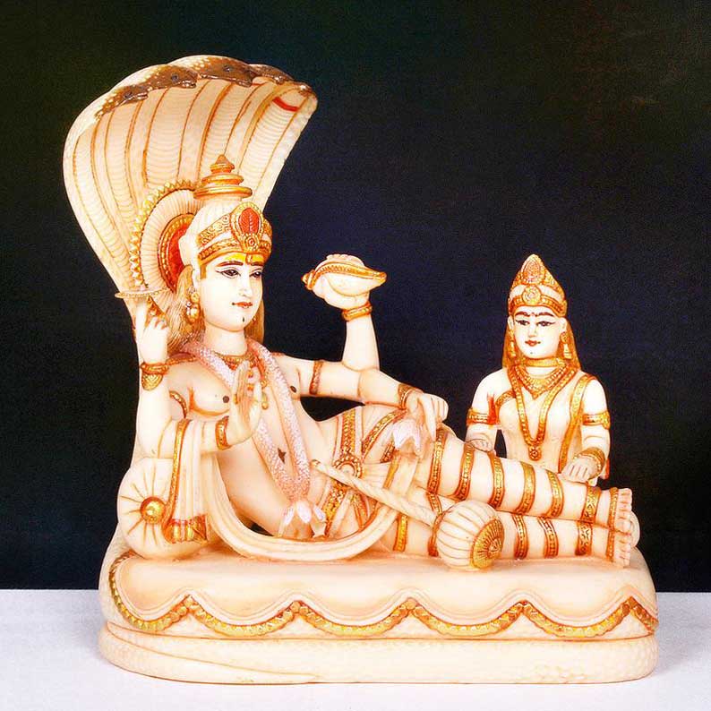 Vishnu is one of the three main gods in Hinduism and the Absolute Supreme being in Vaishnava tradition. Vishnu is the preserver god, which means he protects the universe from being destroyed and keeps it going. Vishnu’s wife is Lakshmi, the Hindu goddess of fortune.