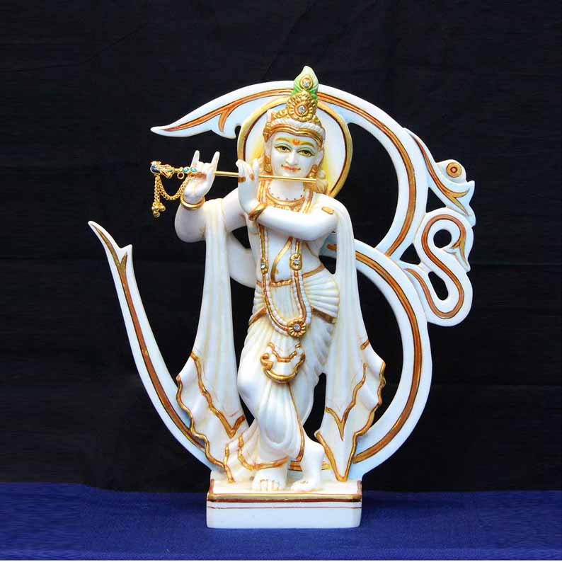 Krishna, one of the most widely revered and popular of all Indian Gods, is considered as the eighth incarnation (avatar) of the Hindu god Vishnu and also as a supreme god in his own right. He is considered to be the most charming and enigmatic of all Hindu Gods. His words of wisdom to his staunch devotee Arjuna, during the war of Mahabharata, is the very edifice of the Hindu religion in the form of the timeless Bhagavad Gita. This beautifully hand carved statue of Lord Krishna