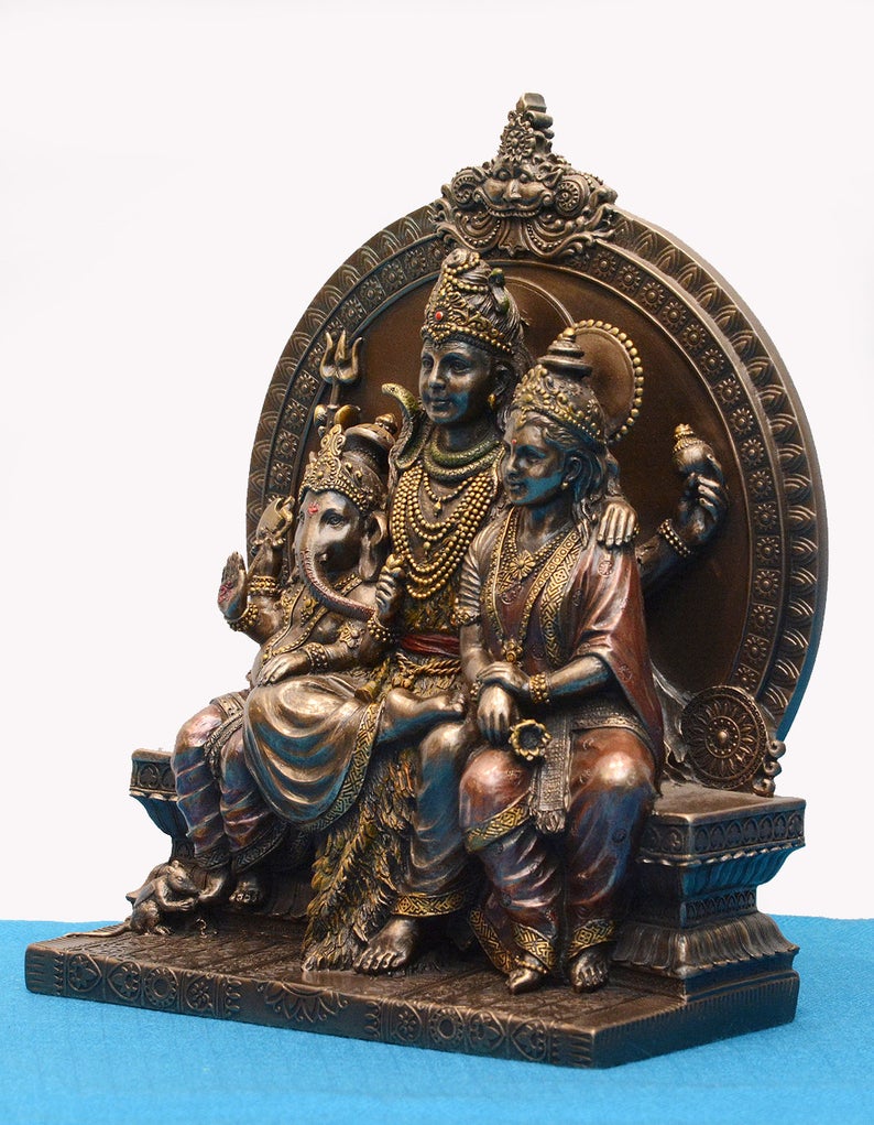 *Shiv Pariwar Statue, Shiv Family, Lord Shiva, Goddess Parvati, Lord Hanuman, Copper cold cast, Puja Statue, Hindu God, Indian Production, Anniversary Gift, Marriage Gift, Birthday Gift, Engagement Gift**